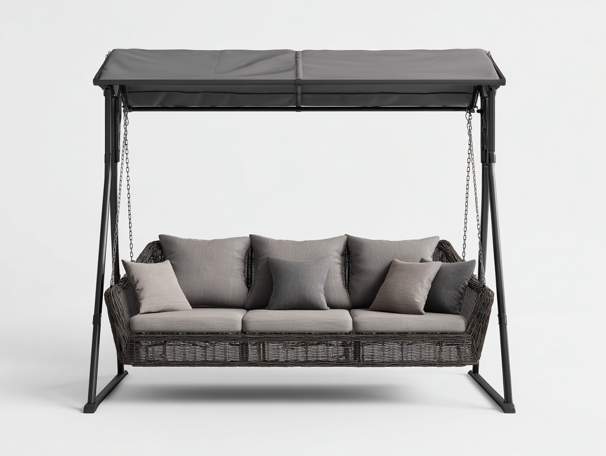 Balancelle de jardin - acier et résine tressée - 210x125x170 cm - gris - style moderne