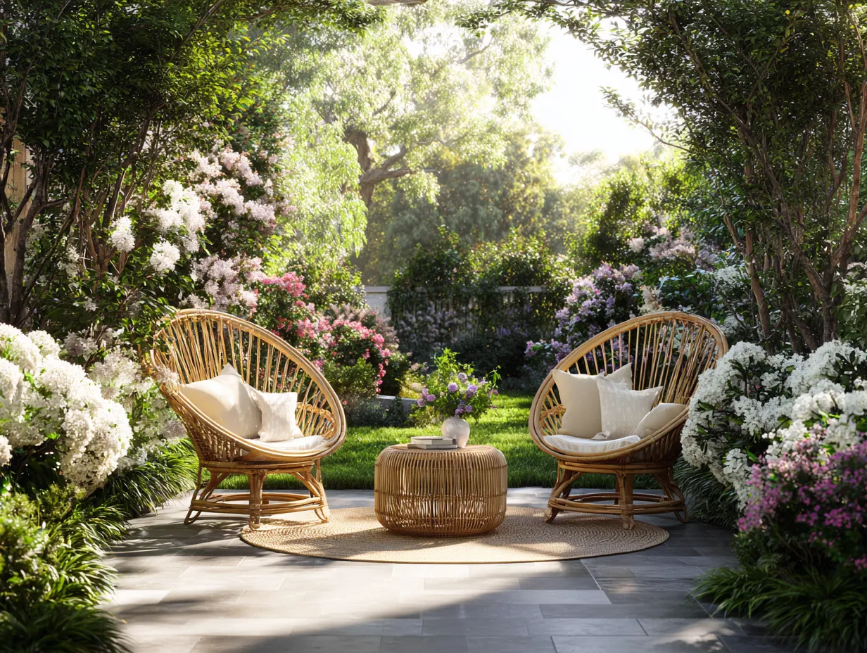 Salon de jardin-Rotan naturel-Bois-78x82x85 cm-Naturel-Style bohème